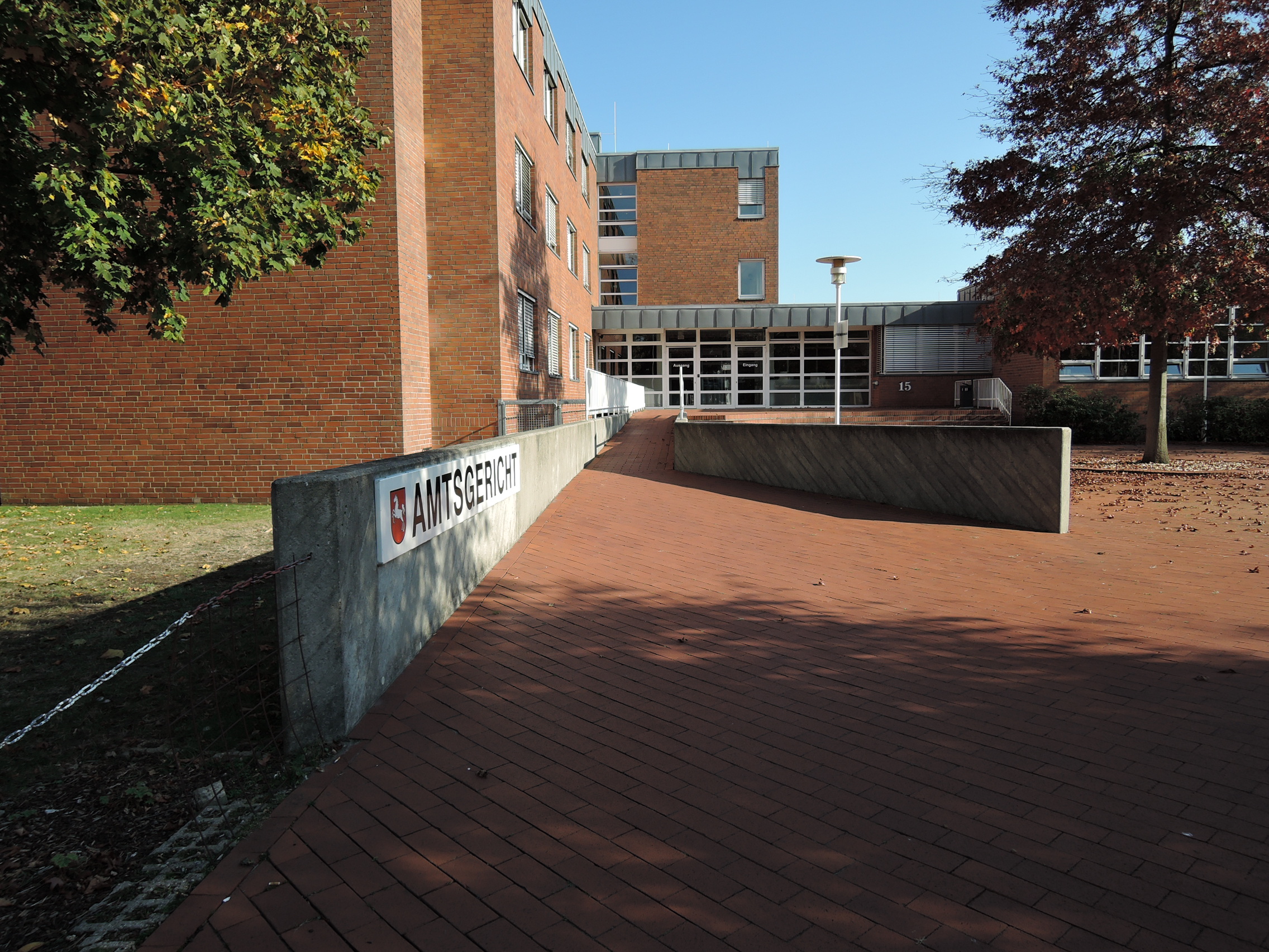 Das Amtsgerichtsgebäude ist frei von Schwellen und Stufen zugänglich. Zu den Öffnungszeiten können Sie das Gericht über eine automatische Schwenktür betreten.